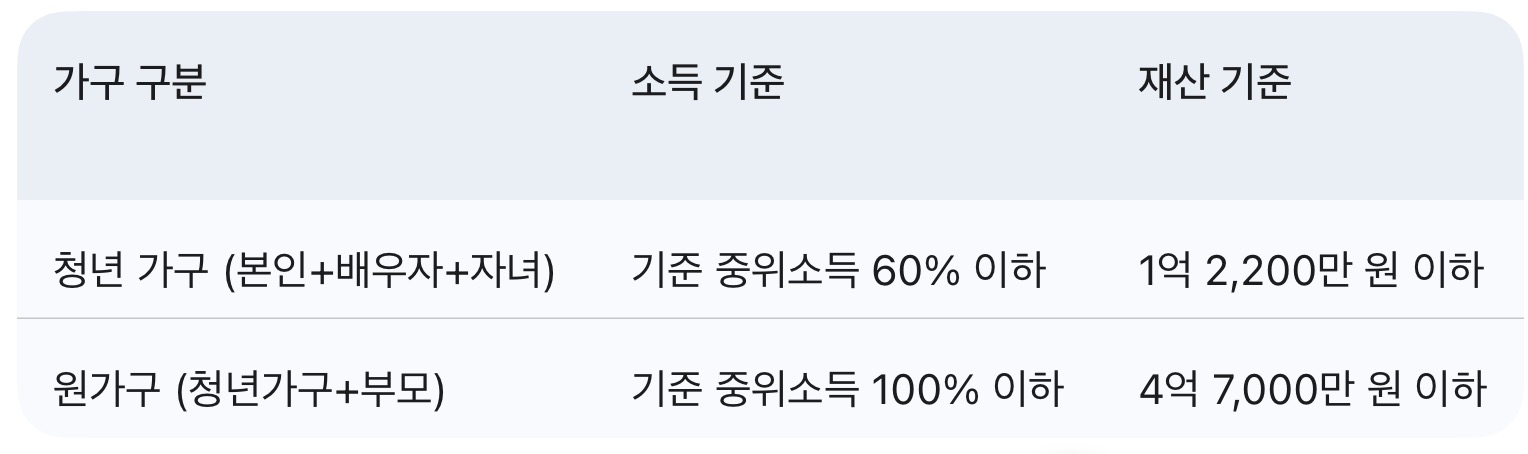 • 거주 조건: 부모님과 별도로 거주하는 무주택 청년